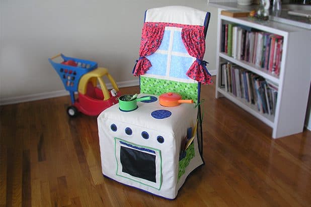 Think this chair cover play kitchen is such a great idea, ideal for taking on holidays or to grannies house.