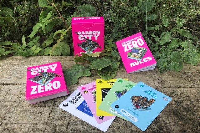 An investment in a game Carbon City Zero on Kickstarter. For just £12 you get one copy of the game due to be delivered in Jan 2020. This is a deck-building game for 2-4 players (aged 8+), in which players develop a sustainable city by building factories, managing people, lobbying government ministers, and raising public awareness. Each player starts with an identical Draw Deck (and a Carbon Level of 40), buying additional cards from a shared Marketplace to create a more sustainable city. Balancing the need to generate income with reducing carbon, players can follow numerous paths to victory, creating synergies between Government, Industry, and Domestic sectors, while avoiding Snags and responding to Global Events. Once a player’s carbon level reaches zero, they win.