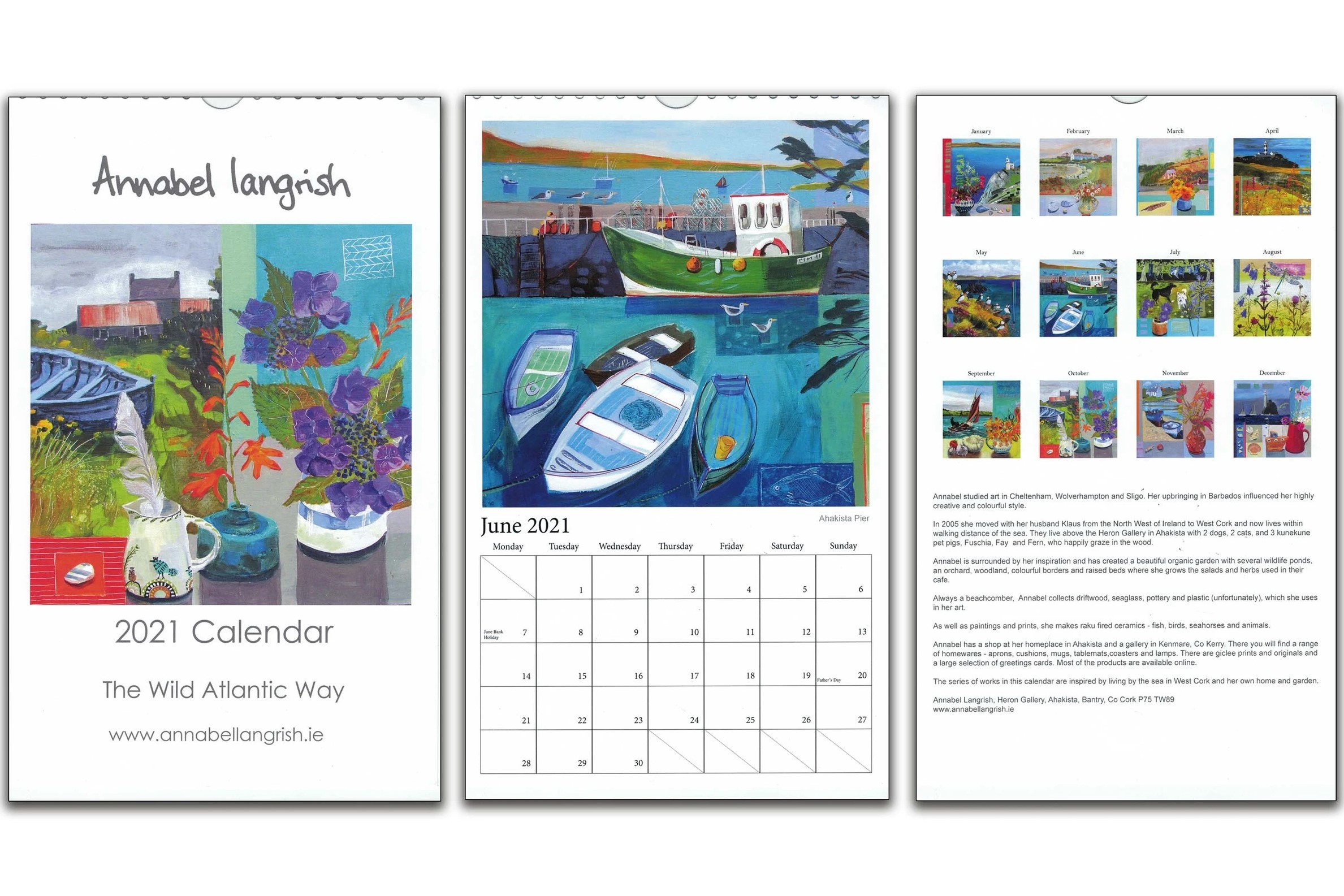 The artist Annabel Langrish has two calendars for this year, one on wildflowers and one with painting of places around West Cork, where she lives. Both calendars are spiral bound and measure 29.5 x 18 cm open or close. You can buy directly from her website.