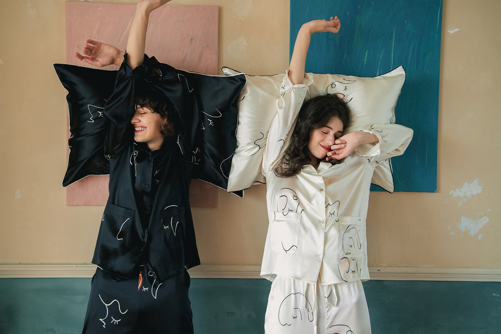 Not Just Pyjama sell high-end nightwear in GOTS and OEKO-TEK certified silk dyed with natural and toxin-free dyes in factories certified as safe by TüV SüD. They make small items from textile offcuts to reduce waste and use recyclable packaging.